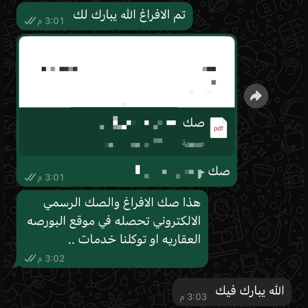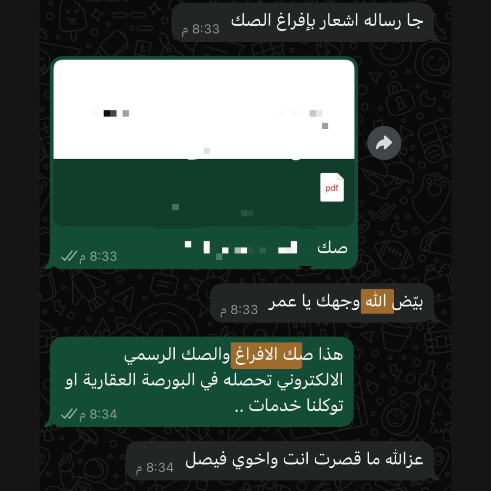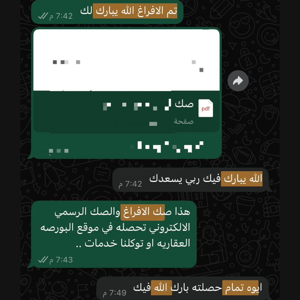 نرافقك خطوة بخطوة حتى إتمام المعاملة واستلام الصك أو التوثيق النهائي.